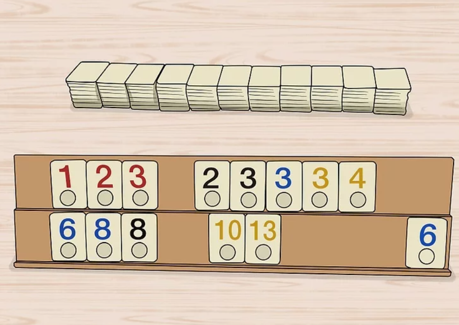4 – kazık ve seriler oluşturun. Turu kazanmak için, kazanan bir eli ortaya çıkarmanız gerekir: kazıklar ve seriler koleksiyonu. Bir set, hepsi aynı sayıda ancak farklı renklerde olan 3 veya 4 taş koleksiyonudur. Bir seri, aynı renkte olan 3 veya daha fazla ardışık numaralı taştan oluşur.
